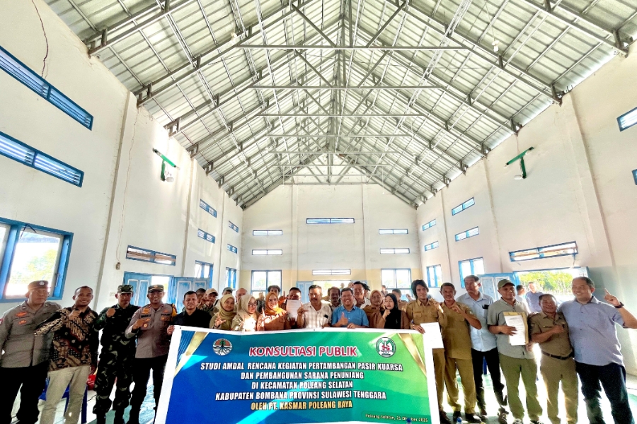 Bombana, JT- PT Kasmar Poleang Raya (KPR Silika), perusahaan yang bergerak di sektor pertambangan pasir, menggelar kegiatan Konsultasi Publik Analisis Mengenai Dampak Lingkungan (AMDAL) Kegiatan berlangsung di Gedung Aula Serbaguna Kecamatan Poleang Selatan, Kabupaten Bombana, Sulawesi Tenggara